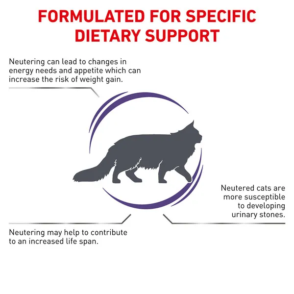 Complete dietetic nutrition for neutered adult cats up to 7 years of age, who are prone to weight gain