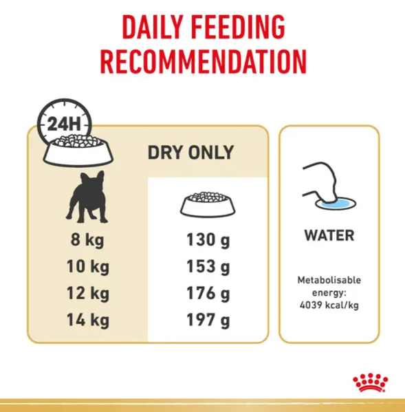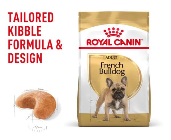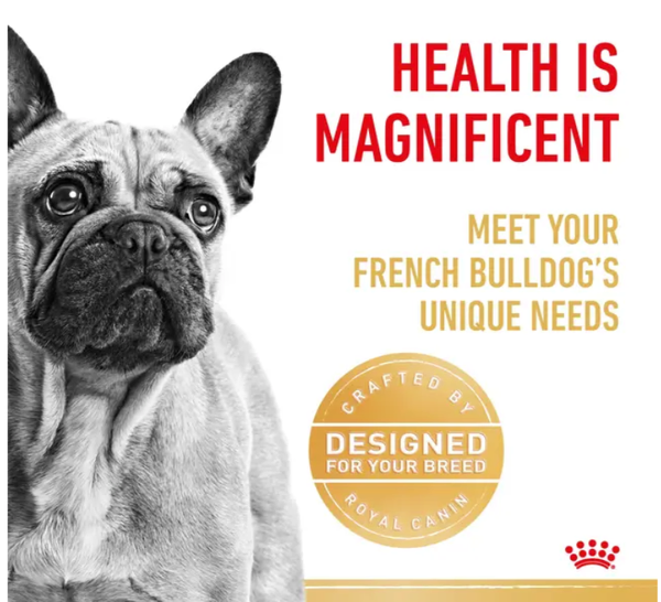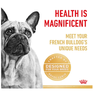 Tailored specifically for French Bulldogs over 12 months of age, Royal Canin® French Bulldog Adult Dry Dog Food supports the unique needs of this playful and muscular breed. With their compact and sturdy build, French Bulldogs benefit from a precise balance of nutrients to maintain lean muscle mass, support digestive comfort, and promote healthy skin.