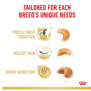 Enriched with EPA, DHA, and a skin-supporting nutrient complex, it helps reinforce the skin’s natural barrier and maintain the health of their short, fine coat. The specially designed, breed-specific kibble shape makes it easier for brachycephalic jaws to grasp and chew, encouraging proper eating habits and better digestion.