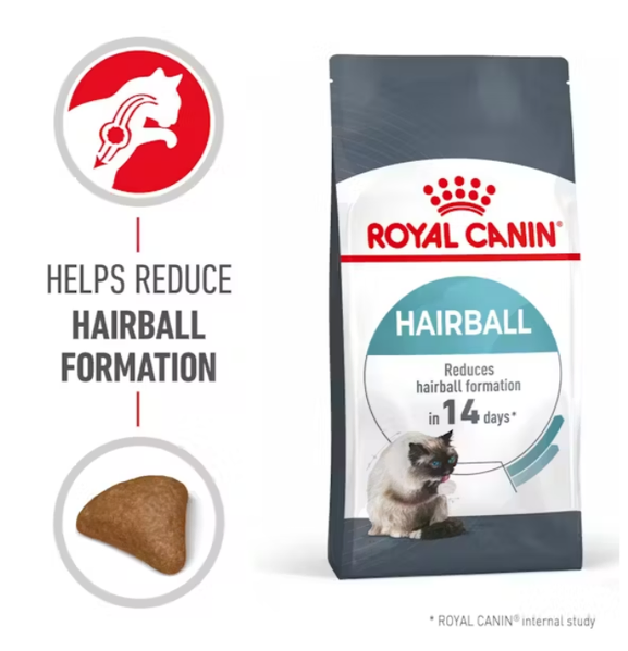 Regular feeding of ROYAL CANIN® HAIRBALL CARE dry formula reduces hairball formation in just 14 days.*