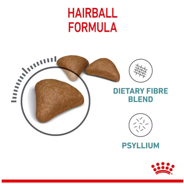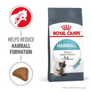 The exclusive use of ROYAL CANIN® HAIRBALL CARE dry formula has been clinically proven to reduce hairball formation within 14 days.* Its specially formulated Hairball Care complex includes a unique blend of natural dietary fibres, such as psyllium, that help stimulate intestinal transit naturally. This encourages ingested hair to be eliminated in the stool instead of accumulating in the stomach and causing regurgitation.