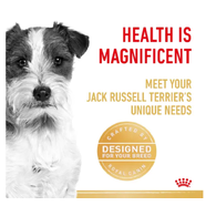 Royal Canin® Jack Russell Terrier Adult Dry Dog Food is tailor-made to meet the unique nutritional needs of adult Jack Russell Terriers aged 10 months and older. Known for their high energy, intelligence, and spirited personalities, Jack Russells benefit from a diet that fuels their active lifestyle and supports their specific breed traits.