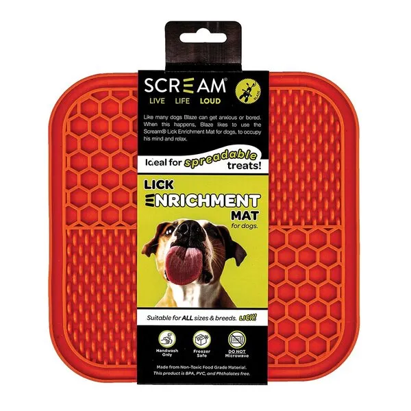 Scream Lick Enrichment Mat Non-Skid Base - Square Loud Orange 21X21Cm
