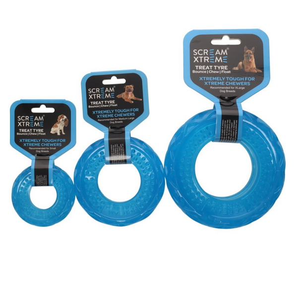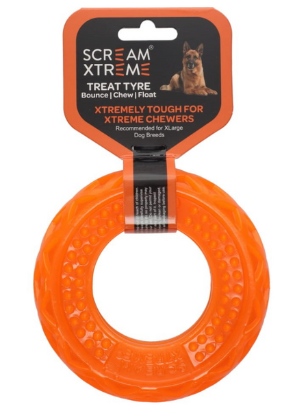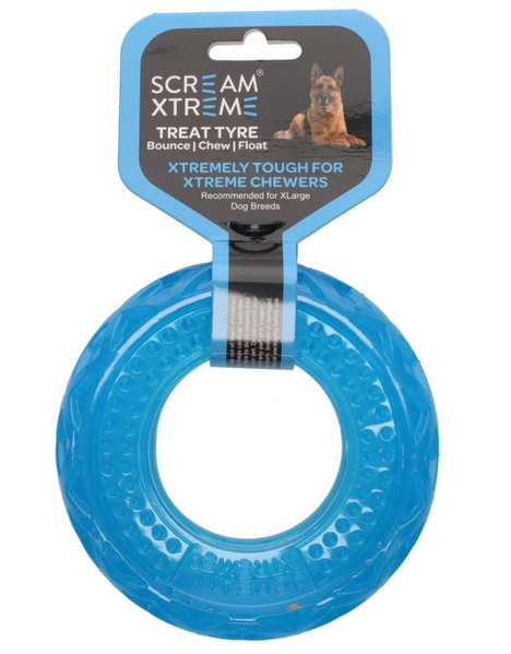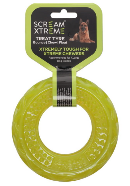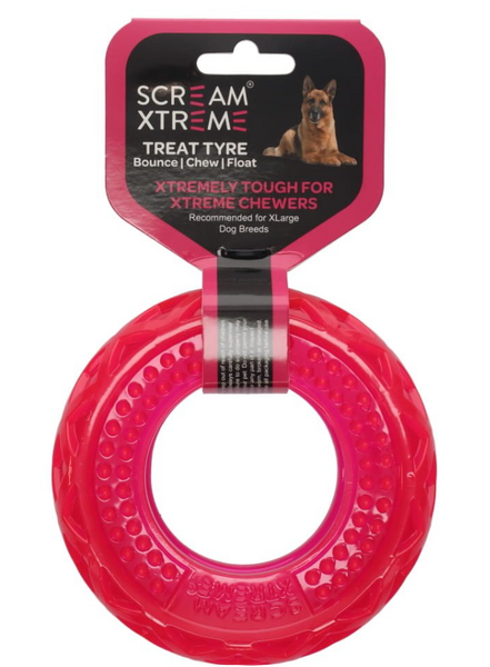 The Scream Xtreme Treat Tyre is the perfect play to for the toughest of pups!
