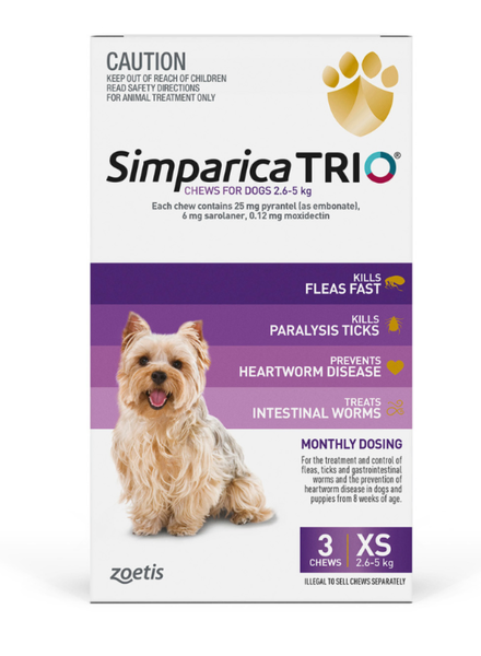 Simparica Trio for XSmall Dogs - 2.6 - 5kg Purple (3pk)