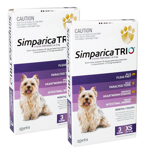 Simparica Trio for XSmall Dogs - 2.6 - 5kg Purple (6pk) PLUS FREE 1pk!