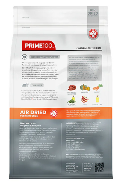 AAFCO Statement: SPD™ Air Dried Kangaroo & Pumpkin is formulated to meet the nutritional levels established by AAFCO dog food nutrient profiles for adult and senior dogs.
