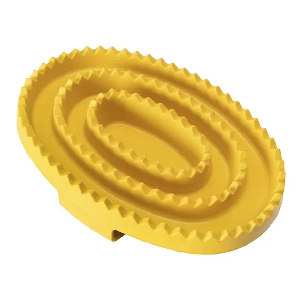 The oval shape of the comb provides a comfortable grip, allowing for easy maneuverability as you work through your horse’s coat. Its flexible rubber nubs gently massage the skin while effectively loosening dirt and hair, making grooming a pleasant experience for your equine friend.