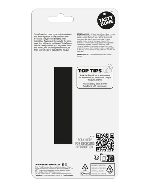 Designed and made in the UK, the TastyBone Peanut Butter Bone is easy to clean and non-toxic, making it a safe choice for supervised chew sessions. Whether your dog enjoys gnawing, tossing, or chewing, this flavour-packed bone is built to last and satisfy your dog’s natural urge to chew.