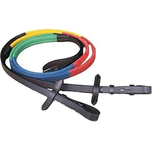 These are the ideal reins for training in many different disciplines. They have four coloured areas to indicate the best place for the riders hands to be. Buckle end leather reins with leather rein stops