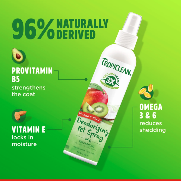 TropiClean EnduraScent Mango Kiwi Deodorizing Spray – 236mL