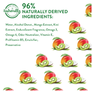 Water, Alcohol Denat., Mango Extract, Kiwi Extract, EnduraScent™ Fragrance, Omega 3, Omega 6, Odor Neutraliser, Vitamin E, ProVitamin B5, Emulsifier, Preservative.