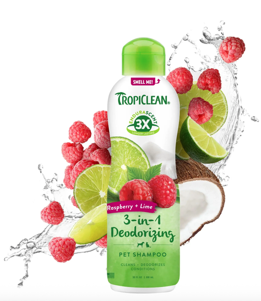 TropiClean EnduraScent Raspberry Lime Deodorising Shampoo 592mL
