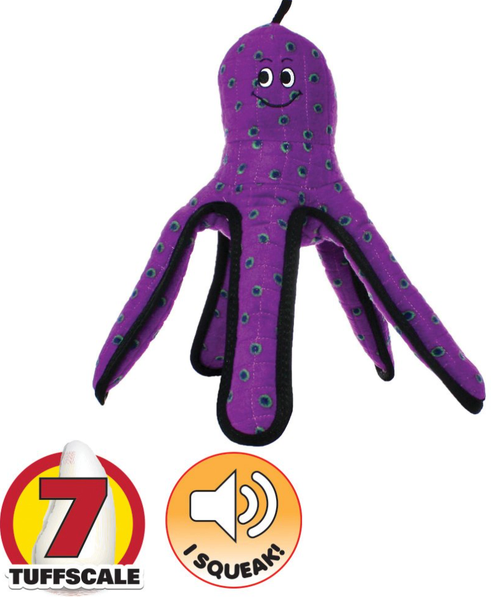 Its floppy legs are great for shaking and tugging, while the multiple squeakers keep your dog intrigued and entertained. Like all toys in the Tuffy® Sea Creatures collection, the Large Octopus floats in water and is machine washable, making it perfect for both land and sea adventures.