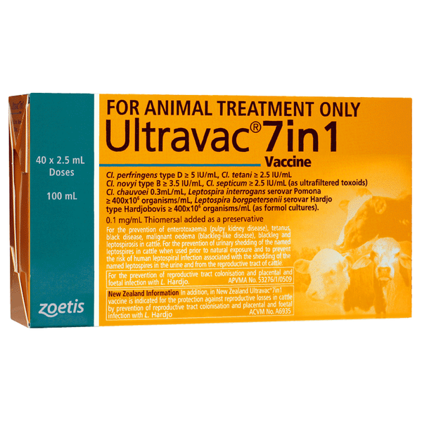 Ultravac 7 in 1 is a Zoetis vaccine used to prevent leptospirosis and major clostridial diseases in cattle. It offers comprehensive protection against Leptospira species and the key Clostridium diseases that can impact herd health and productivity.