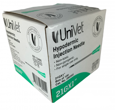 Univet Hypodermic Needles Box of 100 - 21g 1"