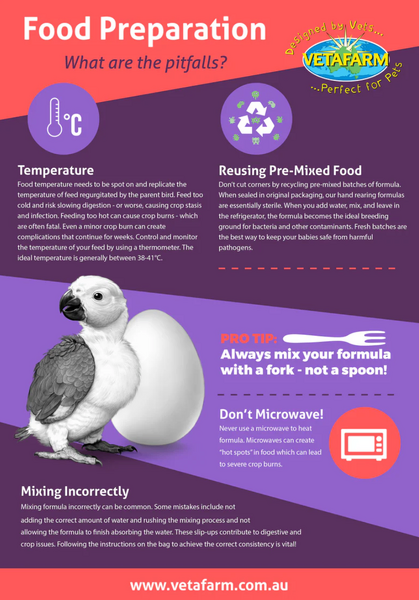- Ensure formula is between 38–41°C before feeding to prevent crop burns and indigestion.