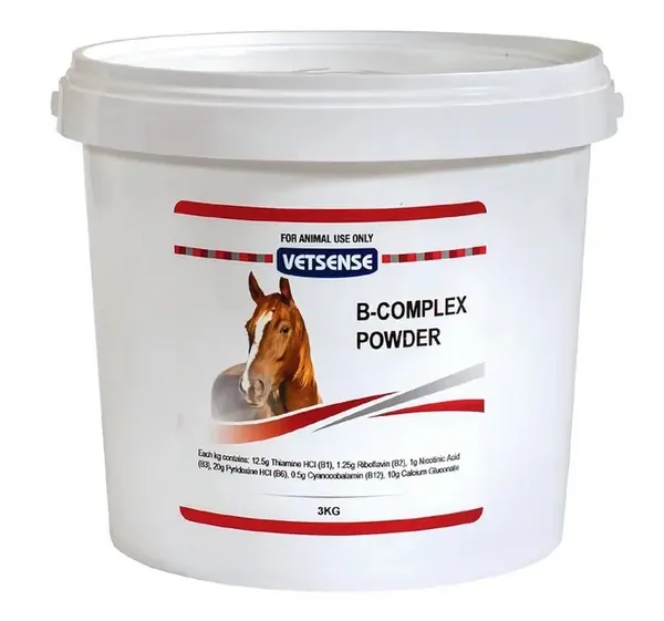 Vetsense B-Complex Powder is a concentrated oral vitamin supplement formulated to support energy metabolism, performance, and recovery in horses, dogs, and greyhounds. Ideal for animals undergoing stress, heavy work, training, or recovery from illness, this supplement provides essential B-group vitamins required for normal metabolic function and vitality.