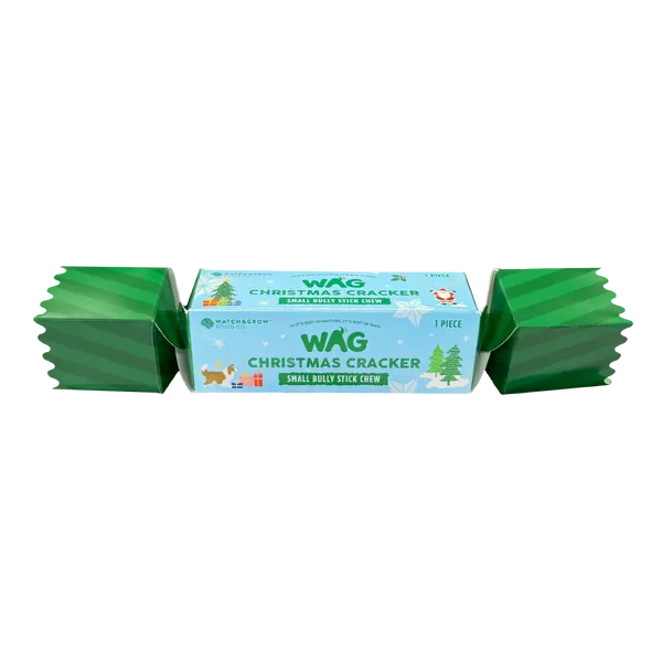 Give your pup a festive surprise with the WAG Christmas Cracker Small Bully Stick - the perfect Christmas treat for small to medium dogs. Each cracker contains a high-quality, long-lasting bully stick made from 100% beef pizzle, offering a natural chew that keeps dogs entertained and supports their dental health.