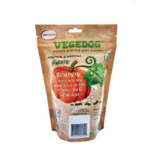 Delight your dog with Wagalot Vegedog Pumpkin & Pepitas Cookies - delicious, plant-based dog treats made with real pumpkin and seeds, handcrafted in Australia. These all-natural, meat-free cookies are packed with nutrients and fibre to keep your dog healthy and happy. Plus, every purchase supports animals in need, with 30¢ from each pack donated to the Wagalot Animal Welfare Fund.