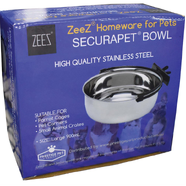 The ZEEZ SecuraPet Bowls are made from heavy gauge stainless steel with a unique snap-fit fixture that clamps on and easily attaches to pet enclosures and wire cages.