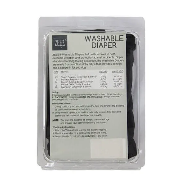 Zeez washable diapers are the perfect solution for dogs, to help with females in heat, excitable urination and protection against accidents.